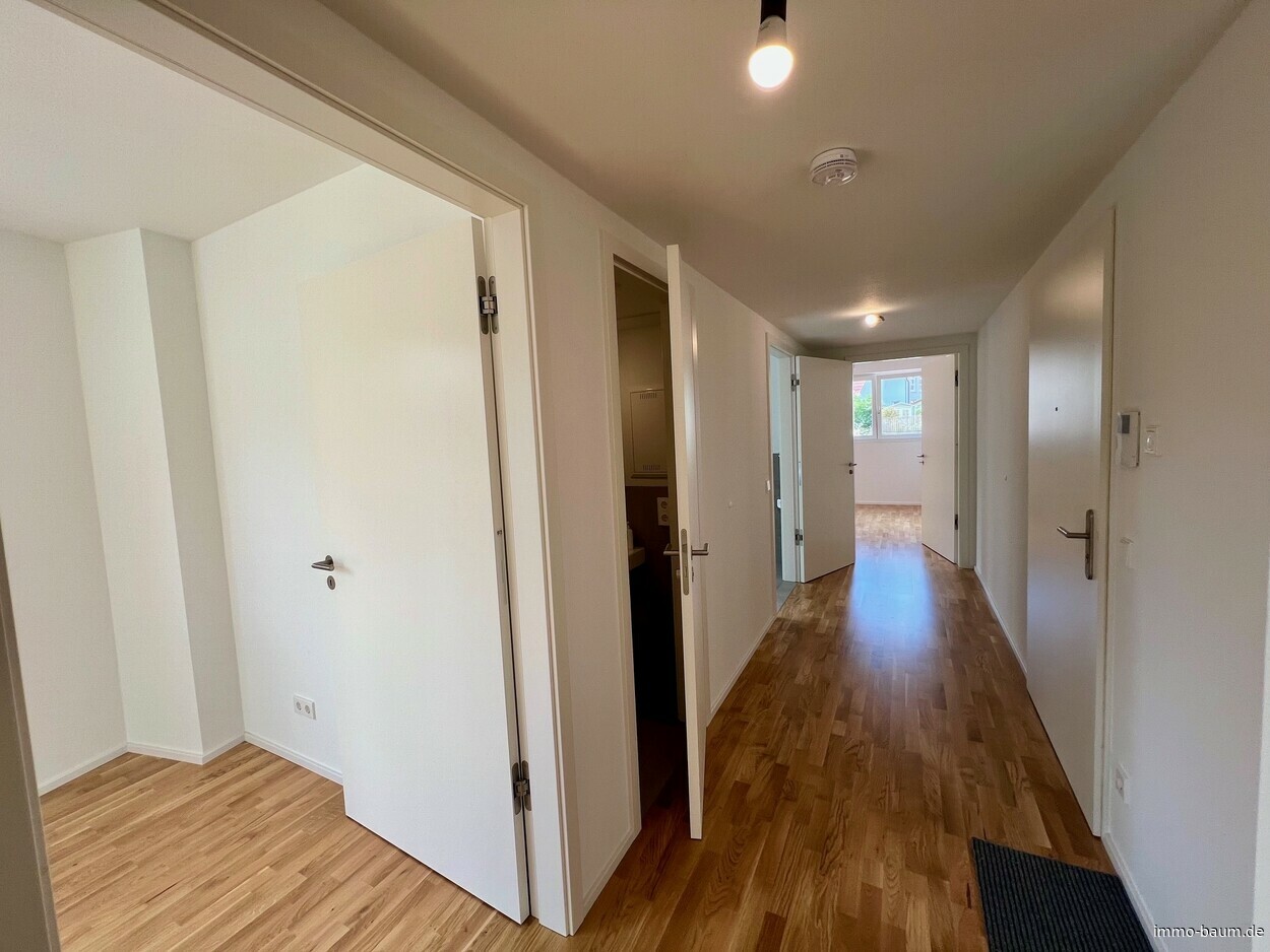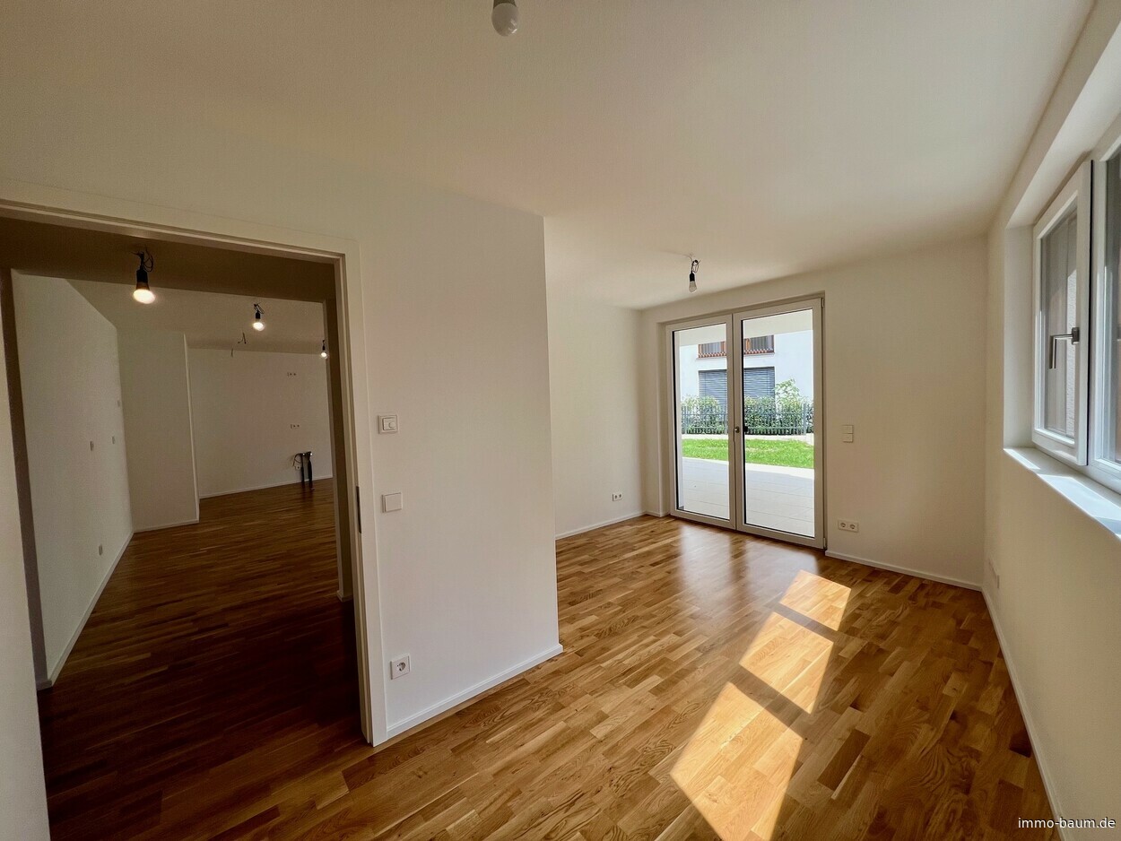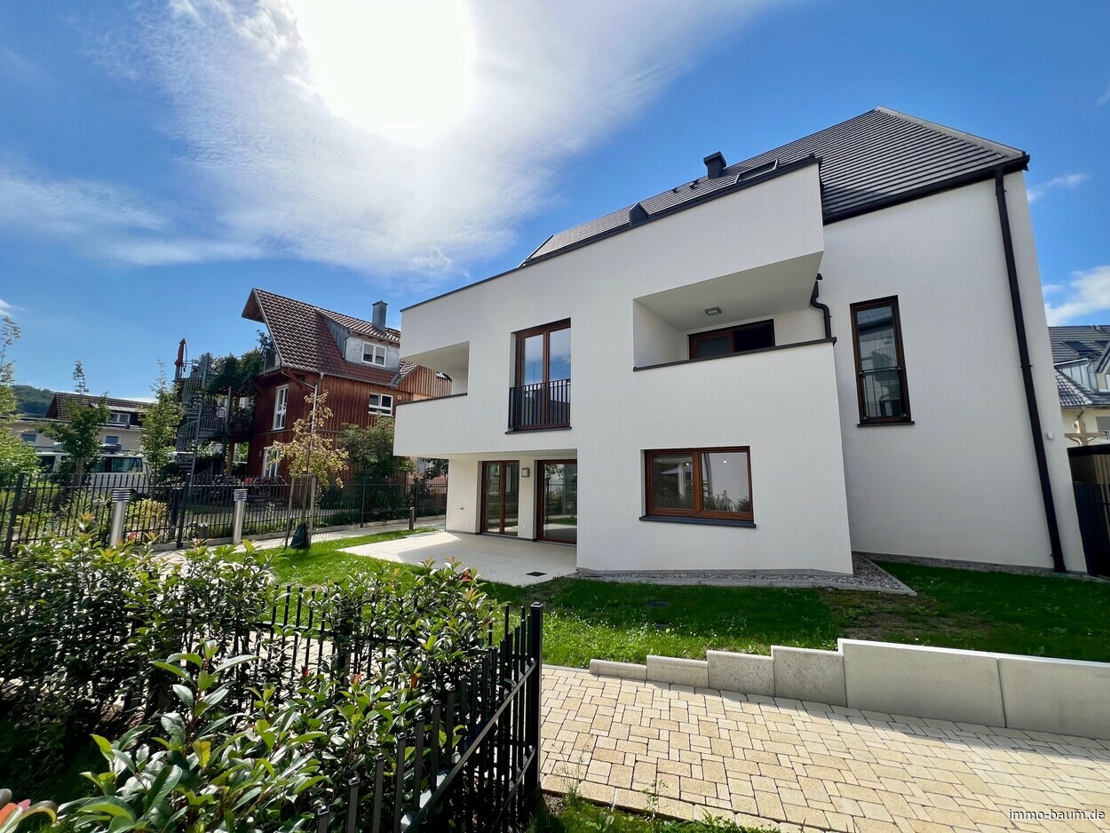 Diese hochwertige 3-Zimmer-Neubauwohnung im Erdgeschoss vereint modernen Wohnkomfort mit zeitloser Eleganz und ökologischer Nachhaltigkeit. Auf rund 106 m² Wohnfläche finden Sie hier nicht nur ein großzügiges Raumkonzept, sondern auch exklusivste Ausstattungsmerkmale, die keine Wünsche offenlassen. Die Wohnung überzeugt durch ihre durchdachte Raumaufteilung und bietet zusätzlich einen privaten Garten, der Ihnen ein hohes Maß an Lebensqualität und Rückzugsort inmitten der Natur ermöglicht. Bereits beim Betreten der Wohnung werden Sie von einer großzügigen Diele empfangen, die einen einladenden Übergang in den lichtdurchfluteten Wohn- und Essbereich und den Zimmern schafft. Die offene Raumgestaltung in Verbindung mit raumhohen Fenstern sorgt für eine freundliche und luftige Atmosphäre, die den gesamten Raum mit natürlichem Licht erfüllt. Die direkte Anbindung an die Terrasse und den angrenzenden Garten erweitert den Wohnbereich und bringt das Leben ins Freie. Hier können Sie entspannen, den Tag ausklingen lassen oder in aller Ruhe Ihre Zeit genießen - der private Garten wird zum Herzstück der Wohnung. Das moderne Badezimmer überzeugt nicht nur durch hochwertige Sanitärobjekte, sondern auch durch seine elegante Gestaltung. Die bodentiefe Dusche, das Fenster, sowie der stilvolle Handtuchheizkörper ergänzen sich perfekt und sorgen für ein rundum angenehmes Nutzungserlebnis. Elegante Bodenfliesen harmonieren mit den modernen Elementen und schaffen eine luxuriöse Atmosphäre. Ein zusätzliches Gäste-WC rundet das Angebot ab und bietet Gästen eine eigene Privatsphäre. Alle Wohn- und Schlafräume sind mit Parkett ausgestattet, das dem gesamten Raum eine warme und behagliche Atmosphäre verleiht. Die offene Küche fügt sich perfekt in das Gesamtkonzept der Wohnung ein. Ein praktischer Abstellraum sorgt für zusätzlichen Stauraum und Ordnung. Zur Wohnung gehört ein Tiefgaragenplatz, der durch eine Wall-Box für die Aufladung von Elektrofahrzeugen ausgestattet ist - eine praktische Lösung für umweltbewusste Mobilität. Der Tiefgaragenplatz kostet zusätzlich für 35.000 EUR. Rufen Sie an und vereinbaren Sie einen Besichtigungstermin.Fußbodenheizung: Eine durchdachte Fußbodenheizung sorgt für angenehme Wärme in allen Räumen und trägt zu einer angenehmen Raumtemperatur bei.