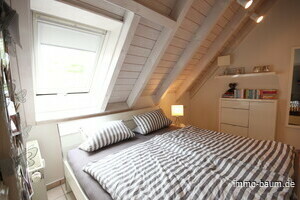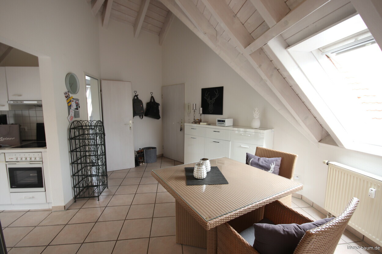 Willkommen im Herzen von Bad Krozingen, einer charmanten Kurstadt mit hoher Lebensqualität und idealer Infrastruktur. Die gepflegte 2-Zimmer-Dachgeschosswohnung befindet sich in einer ruhigen Seitenstraße in unmittelbarer Nähe zum Lammplatz - einem der zentralsten und lebendigsten Orte der Stadt. Einkaufsmöglichkeiten, Apotheken, Ärzte und Cafés liegen nur wenige Schritte entfernt und machen den Alltag besonders bequem. Auch der Bahnhof Bad Krozingen mit direkter Anbindung nach Freiburg, Basel und in die Region ist fußläufig schnell erreichbar - ideal für Pendler oder Stadtliebhaber.Das im Jahr 1993/94 erbaute Mehrfamilienhaus ist gepflegt, ruhig gelegen und bietet modernen Wohnkomfort. Ein Aufzug führt bequem bis in das Dachgeschoss - barrierearm und alltagstauglich für jedes Alter. Die Wohnung selbst liegt in der obersten Etage und bietet durch die Lage einen besonders schönen Ausblick ins Grüne sowie eine angenehme Ruhe trotz Innenstadtlage. Die rund 48 m² große Dachgeschosswohnung überzeugt mit einem durchdachten Grundriss und einer hellen, freundlichen Ausstrahlung. Besonders ins Auge fällt die großzügige Raumwirkung durch die hohen Decken bis in den First sowie das sichtbare, weiß gestrichene Gebälk, das dem Wohnraum einen gemütlichen und gleichzeitig luftigen Charakter verleiht. Die Dachgeschosswohnung überzeugt mit einer durchdachten und funktionalen Ausstattung, die sowohl Komfort als auch Wohnqualität bietet. Wohn- und Schlafzimmer sind mit hellen, pflegeleichten Fliesenböden ausgestattet, die dem Raum eine freundliche, zeitlose Atmosphäre verleihen. Der offene Wohn- und Essbereich bietet direkten Zugang zum großzügigen überdachten Balkon, der nach Südwesten ausgerichtet ist. Mit seinem Blick ins Grüne wird er in den warmen Monaten zum erweiterten Wohnbereich und lädt zum Verweilen ein. Die kleine, funktionale Einbauküche fügt sich harmonisch in den Wohnraum ein. Das Badezimmer ist hell gefliest und mit einer praktischen Dusche sowie einem Platz für die Waschmaschine ausgestattet. Im Schlafzimmer sorgt ein maßgefertigter Einbauschrank für optimalen Stauraum, ohne dabei wertvolle Stellfläche zu verlieren - eine platzsparende Lösung mit praktischem Mehrwert. Zur Wohnung gehört ein Kellerabteil im Untergeschoss, das Ihnen zusätzlichen Stauraum bietet. Der Tiefgaragenstellplatz kostet zusätzlich 20.000 EUR - ein wertvoller Vorteil in zentraler Lage.